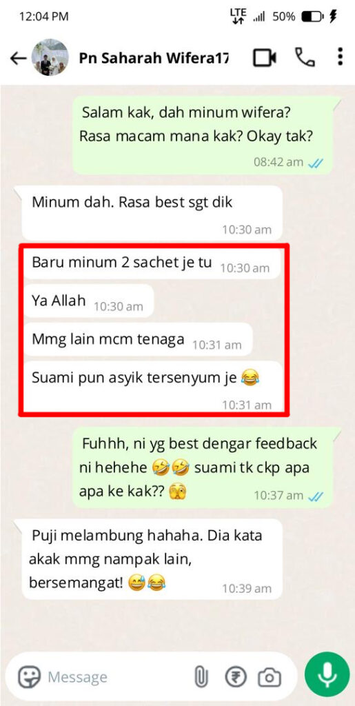 Rawatan herba WIFERA menunjukkan kesan beransur, stabil dan konsisten dari semasa ke semasa. Berbeza dengan ubatan kimia yang memberi lonjakan cepat tetapi kurang berpanjangan.